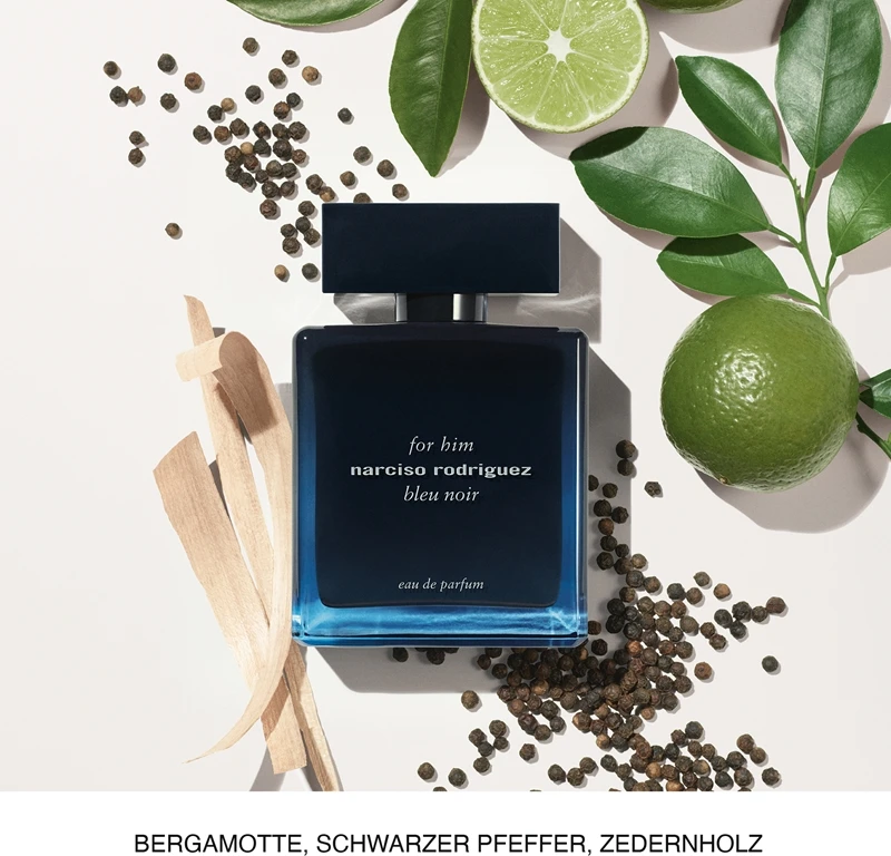 L’incroyable eau de parfum Narciso Rodriguez For Him Bleu Noir vous enchantera par sa combinaison raffinée de cèdre de l’Himalaya « bleu » et de bois d’ébène noir.